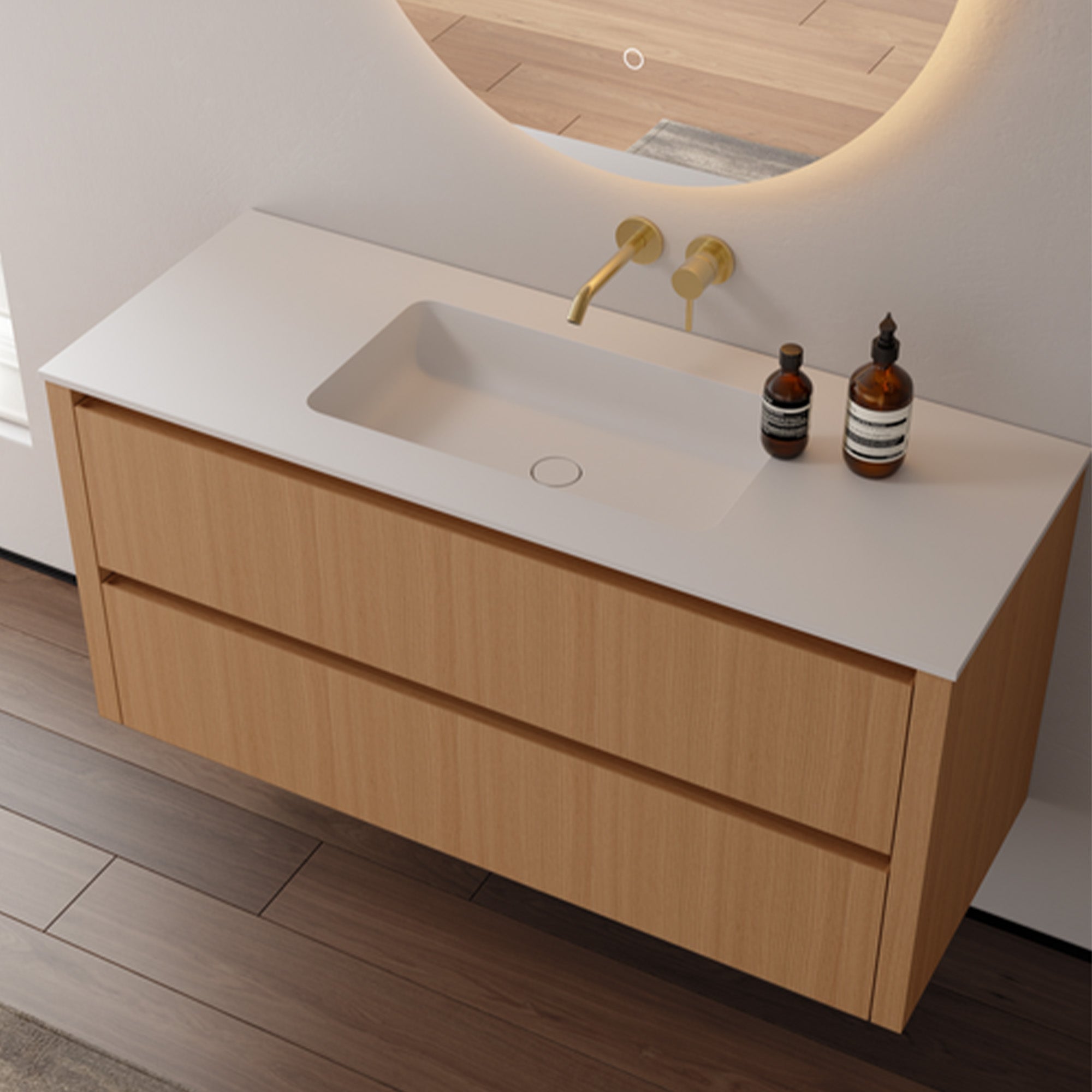 Wood Veneer Surface - Adds tactile warmth and natural wood detail to the vanity exterior.
