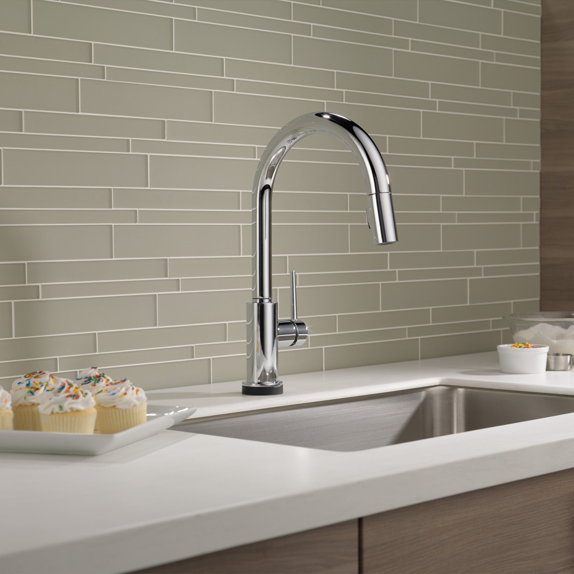 Sculptural yet smart, the Delta Trinsic VoiceIQ sets a new standard for the modern kitchen faucet, where luxury design meets cutting-edge connectivity and control. With it's clean gooseneck silhouette and premium finish options, this faucet makes a bold style statement. But the real innovation lies beneath: voice and touch activation mean you can start or stop water flow hands-free. The TempSense LED gives you a clear indication of water temperature and the industry leading DIAMOND™ seal ensures durability.