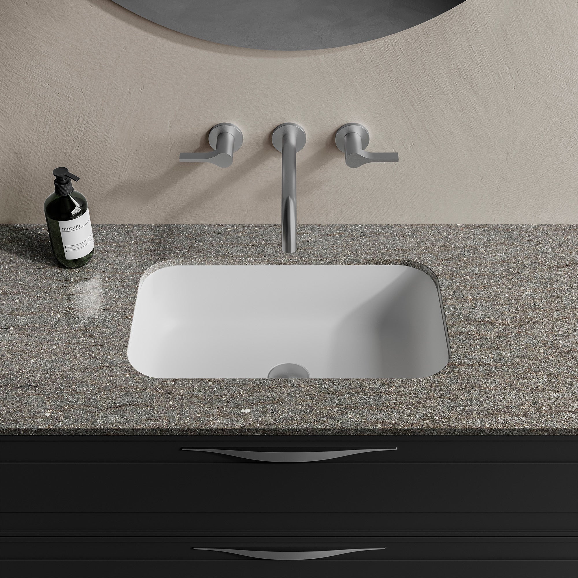 The StoneTouch Sotto Rectangular Undermount Sink offers a clean and streamlined look for modern bathroom vanities. Designed to sit neatly under your countertop, this basin creates a continuous surface that highlights your vanity's design while providing a practical and easy to maintain wash area. Crafted in Italy from premium Cristalplant® Solid Surface, it brings lasting performance with a soft matte finish that's pleasant to the touch and naturally antibacterial.