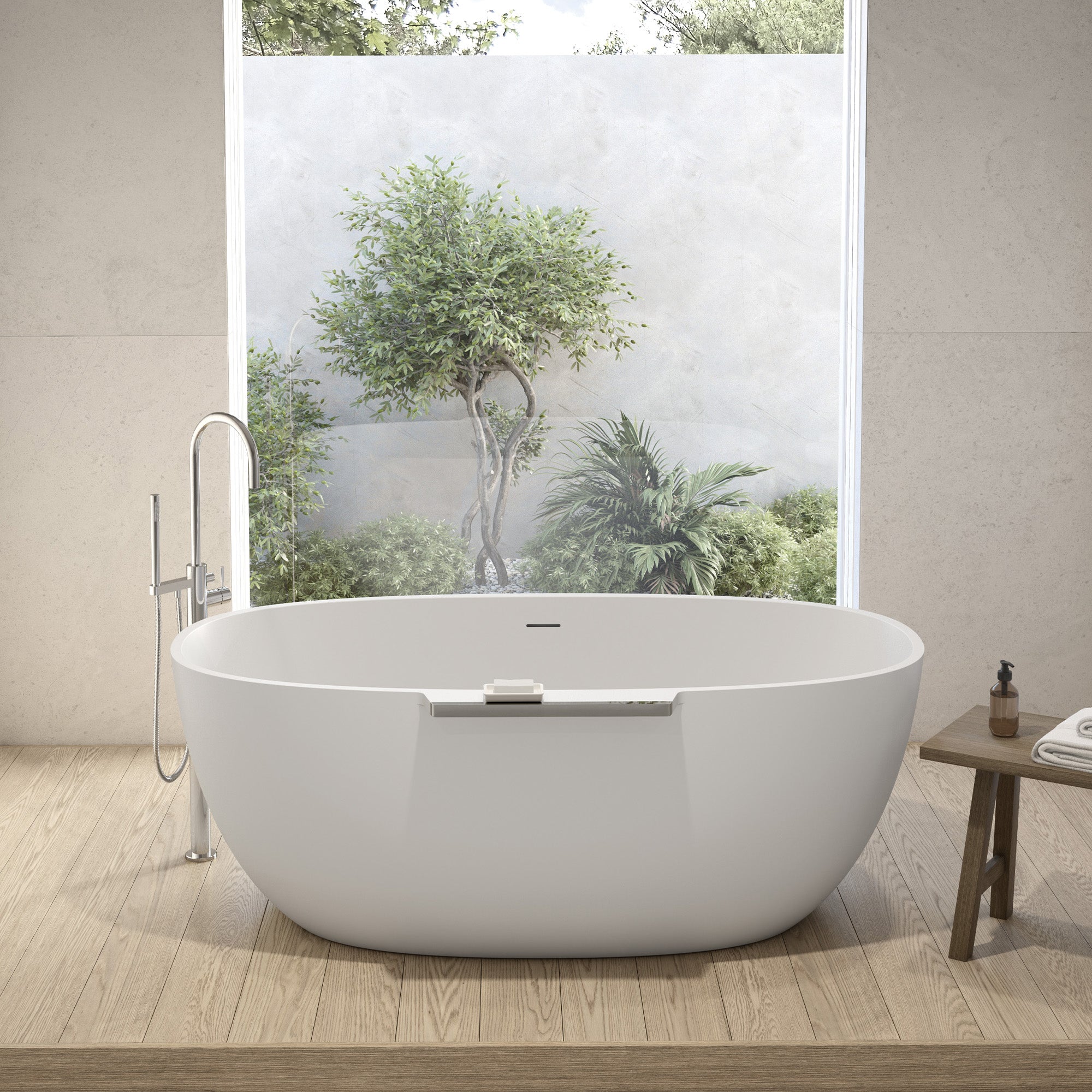 Aria Stone Lucia 63" x 35" Solid Surface Freestanding Bathtub