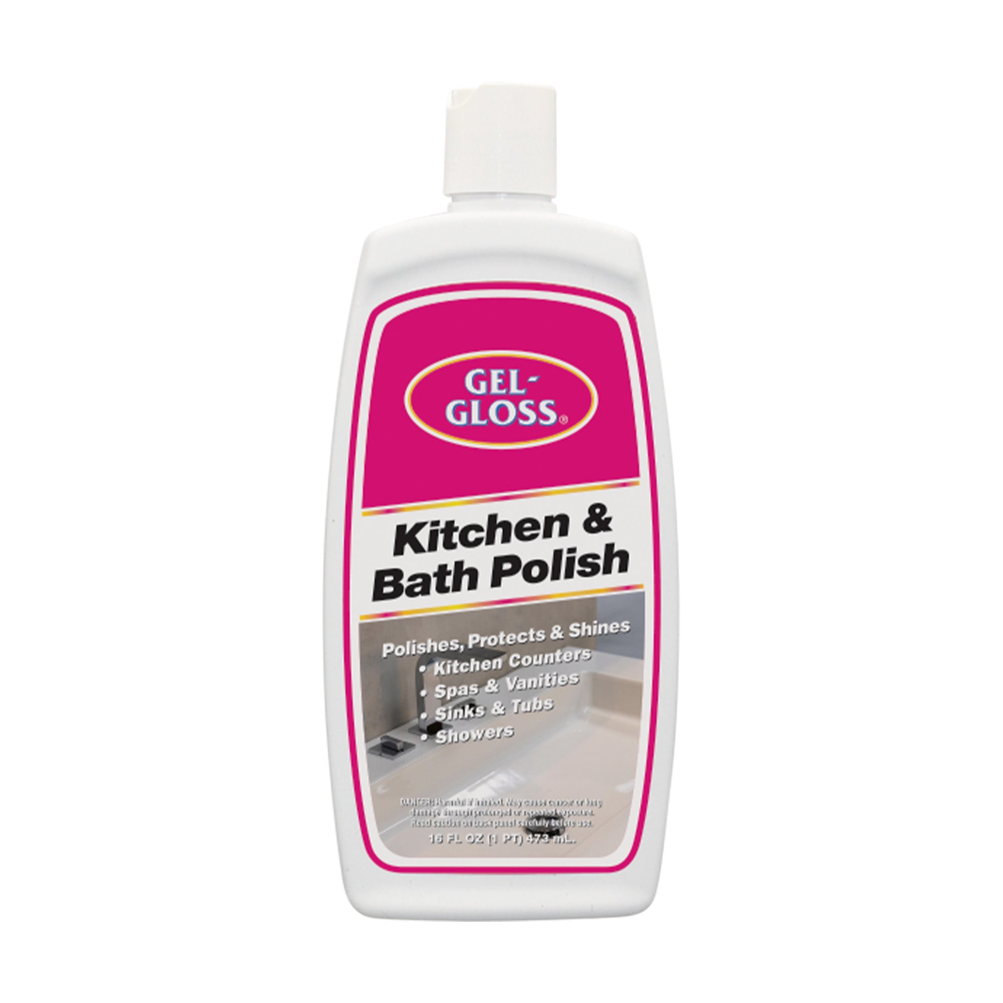 Gel-Gloss Kitchen & Bath Polish restores the original shine and finish of your kitchen and bath surfaces while laying down a protective wax-polymer layer to guard against water spots, mineral film and everyday wear. From Stainless steel to acrylic tubs and laminate countertops, it's a versatile solution.